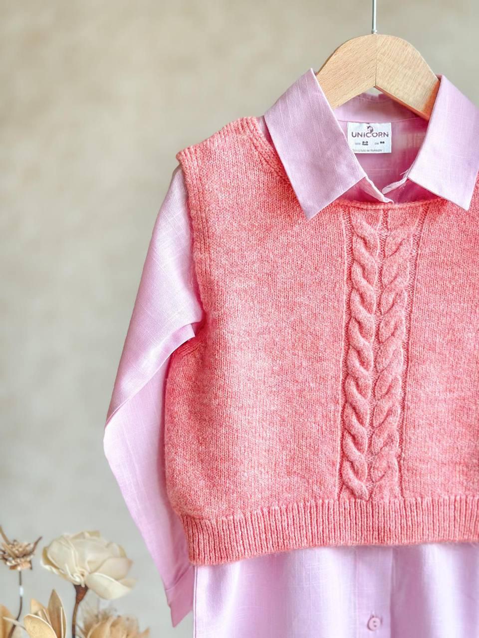 Bu özel 3’lü set; gömlek elbise, yumuşacık süveter ve kurdele detaylı çorap ile minik hanımlar için tam bir kombin paketi sunuyor. Günlük giyimden özel gün stiline kadar her ortama uyum sağlar.